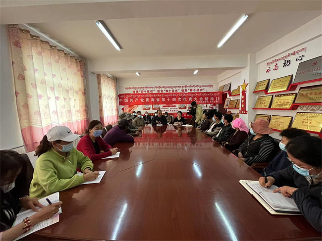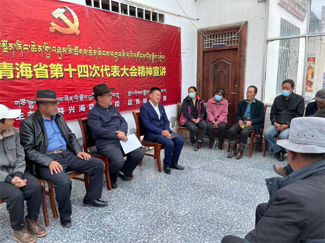 在興?h中鐵鄉(xiāng)民族村宣講青海省第十四次黨代會精神。海南州興?h委宣傳部供圖