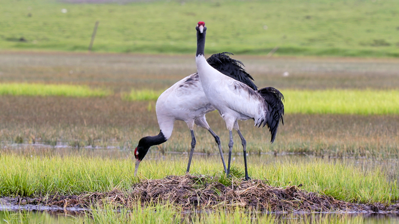 黑頸鶴高山和夏雨夫婦正在筑巢。張景元攝
