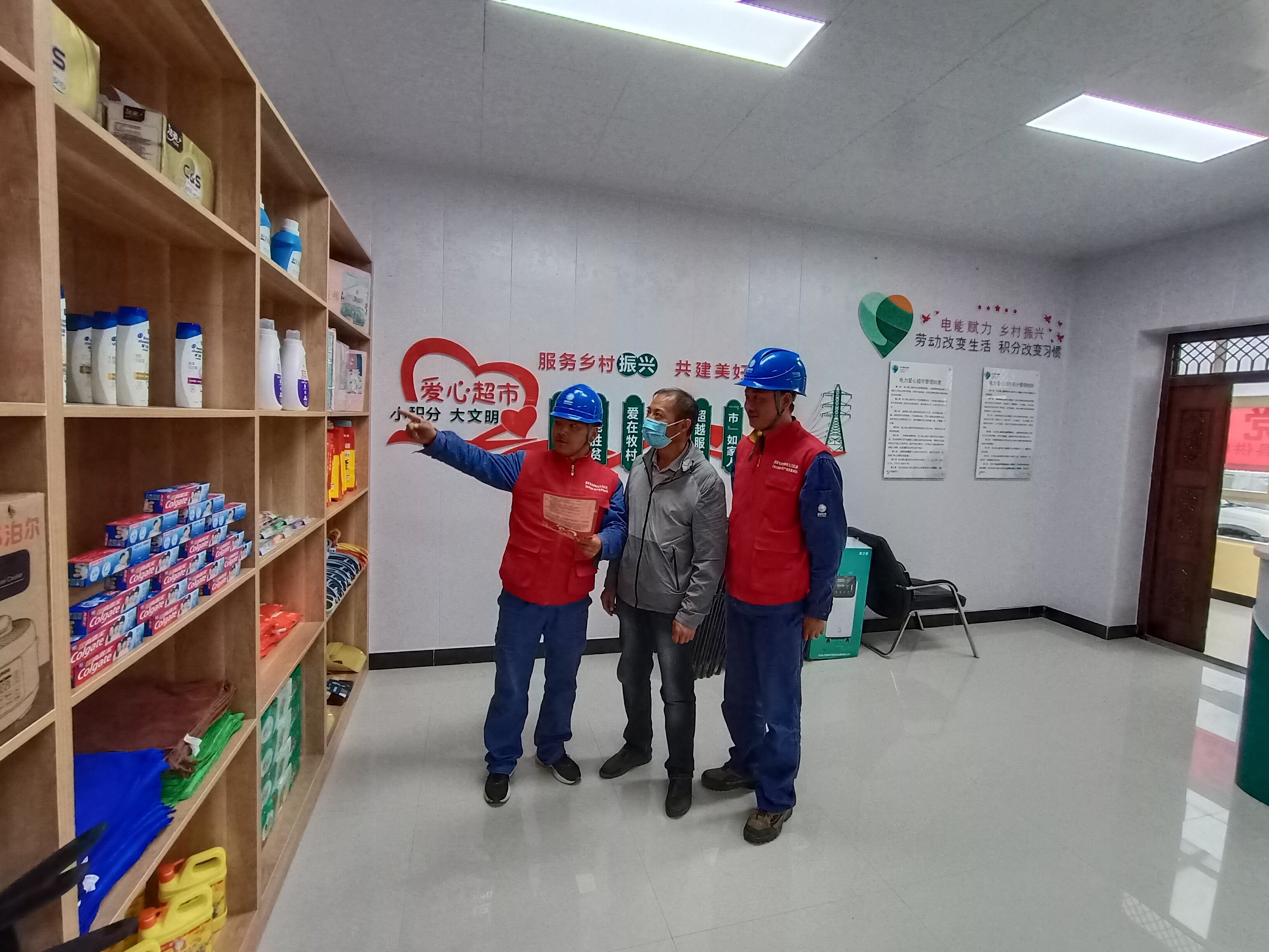 工作人員給村民講解“電力愛心超市”積分兌換規(guī)則。馬德林?jǐn)z