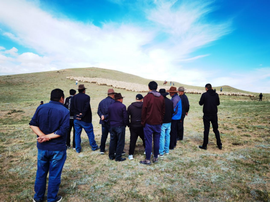 觀摩團(tuán)在藏羊養(yǎng)殖基地現(xiàn)場(chǎng)進(jìn)行學(xué)習(xí)。甘德縣委宣傳部供圖