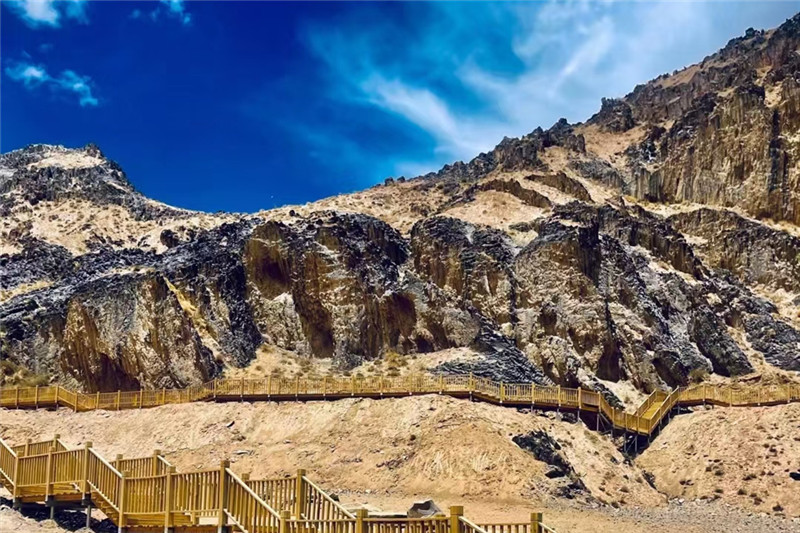 2022年6月18日都蘭縣火山巖柱狀節(jié)理群景區(qū)開業(yè),作為目前青海省發(fā)現(xiàn)規(guī)模最大、特征最典型的火山巖柱狀節(jié)理群,草原文化與地質(zhì)景觀融于一體,美學(xué)觀賞價值和科研科普價值相得益彰,是弘揚民族文化、打造特色旅游品牌的重要載體。