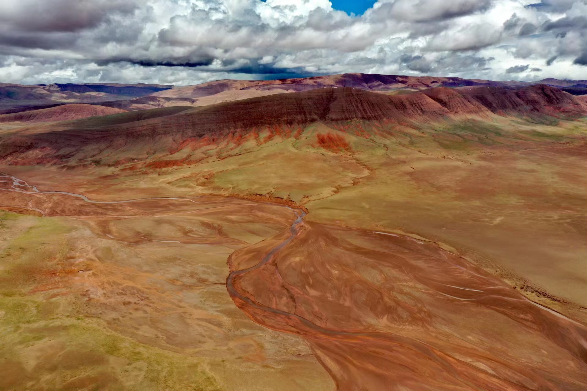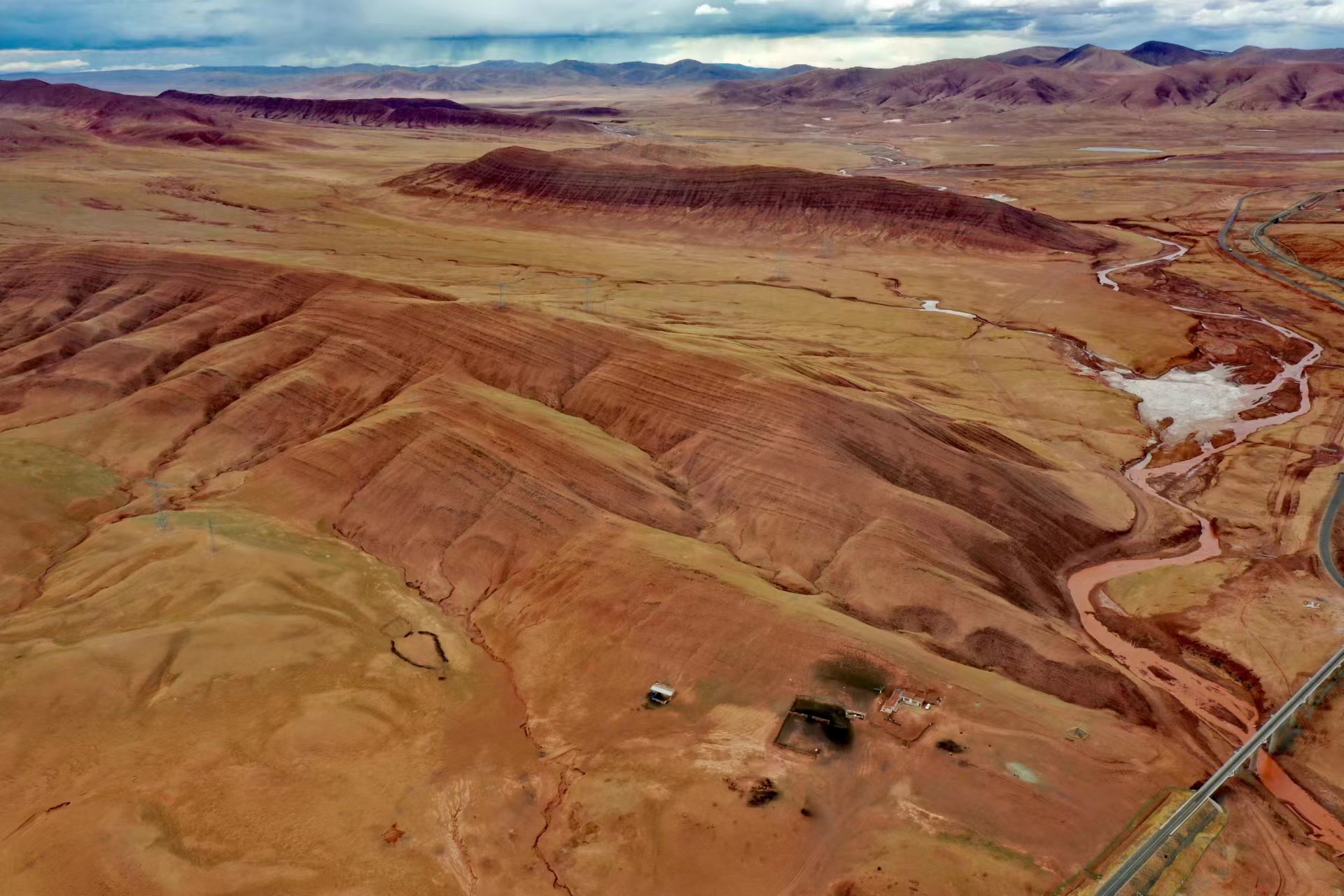 人民網(wǎng)西寧6月23日電 (顧斐菲)近日,中國地質(zhì)大學(武漢)長江科考先遣隊員張永一行進行綜合科學考察時,在青藏公路日阿尺曲一帶發(fā)現(xiàn)一條紅色山脈,是青藏高原109國道沿線一處壯觀的地質(zhì)遺跡。該山脈由晚白堊紀鈣質(zhì)膠結(jié)的粉、細砂巖與古近紀紫紅色、磚紅色復(fù)成份礫巖所組成,呈近東西走向,兩坡不對稱,南陡北緩,地層剖面出露清楚。