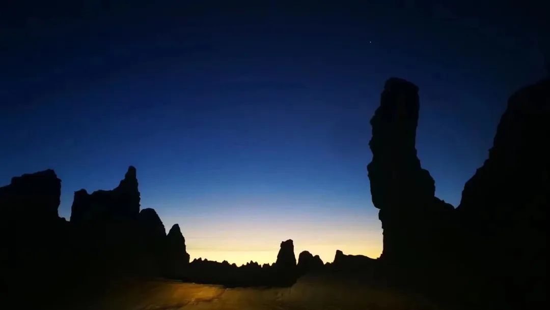 茫崖市大風(fēng)山屬第三紀(jì)地質(zhì),呈雅丹之丘、槽型低地交織風(fēng)蝕特征明顯的大平灘,這里為柴達(dá)木盆地最干旱的地區(qū),有名的地表星辰(又名星光大道)、鍶礦藏就出現(xiàn)在這里。因?yàn)樗绊憳O小,這片荒原天空特別純凈。黃昏時(shí)分,經(jīng)過(guò)大風(fēng)山經(jīng)常可以看到西邊阿爾金山的天空亮麗,晚霞之上的蒼穹宛如深邃的大海,形成了云彩輝映的“藍(lán)帶”,環(huán)繞著“日照金山”的奇觀,這種“瑞利散射”現(xiàn)象在蒸發(fā)量超過(guò)降水量20倍以上的大風(fēng)山尤為明顯。