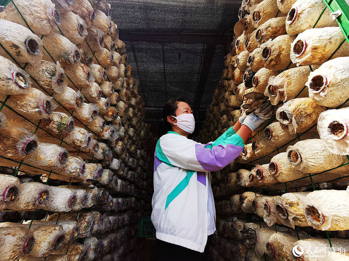 麻地溝村村民正在采摘平菇。人民網(wǎng) 楊啟紅攝