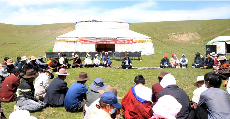 藍天白云下,草原暗花香,剛察草原迎來了一年中最美的季節(jié)。6月下旬的一天,達娃達杰期待的政策宣講來了——一場以“感恩奮進有我”為主題的黨日活動在果洛藏貢麻村后山的草場上舉行,活動同時對村里深入推進精神文明建設(shè)、民族團結(jié)鞏固、公序良俗推動等方面涌現(xiàn)出的優(yōu)秀個人和集體進行了表彰,還組織了歌舞表演,贏得了現(xiàn)場群眾的陣陣掌聲。