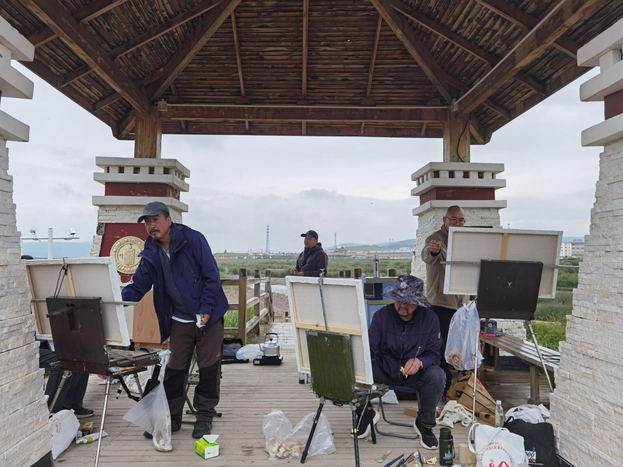 本次活動共分為寫生、創(chuàng)作、作品展覽三個階段,畫家們用獨特的藝術(shù)眼光、細(xì)膩精湛的筆觸把剛察山川河流、人文景觀揉進(jìn)畫面,創(chuàng)作出一批體現(xiàn)剛察生態(tài)文明建設(shè)成就的好作品。歷時一周的時間里,畫家們赴湟魚家園、倉央嘉措廣場、職工文化廣場、沙柳河景區(qū)、瓦彥山、仙女灣、泉吉河、祭海臺等地點進(jìn)行寫生創(chuàng)作。