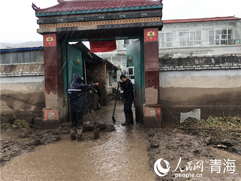 大通縣青山鄉(xiāng)群眾正在清理淤泥。人民網(wǎng) 劉沛然攝