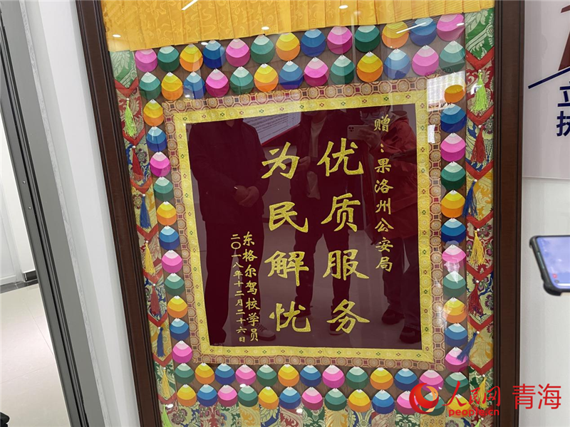 “瑪多專場”學員贈送的錦旗。人民網(wǎng) 況玉攝
