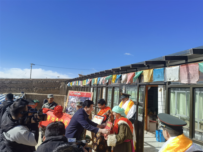 伴隨著激昂的敲鑼打鼓聲,周邊牧民騎馬相迎,大家圍在身披“二等功臣家庭”綬帶的尕洛父母身邊,紛紛稱贊尕洛為全縣人民爭(zhēng)了光。在鄉(xiāng)親們的掌聲與歡呼聲中,縣長(zhǎng)周本加為立功家屬佩戴象征榮譽(yù)的大紅花和綬帶,并將“二等功”喜報(bào)、慰問金送到家屬的手上。尕洛父親激動(dòng)地說:“今后會(huì)倍加珍惜榮譽(yù),一如既往支持兒子,讓他安心服役,再立新功!”