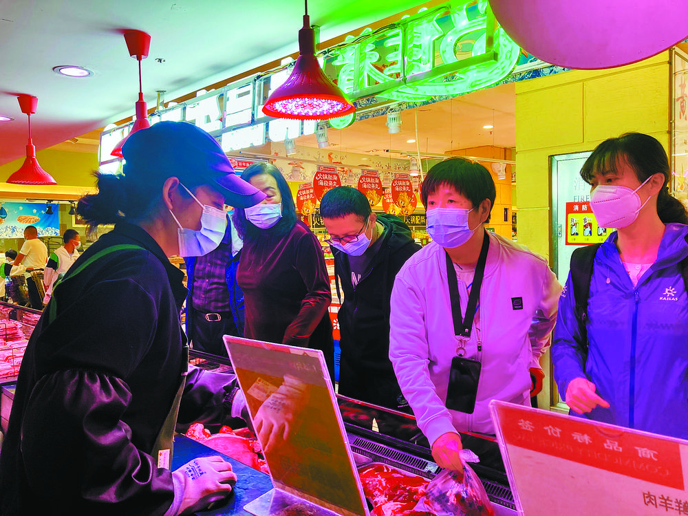 肉攤前幾位市民正在詢問價格。青海日報記者 張慧慧 攝