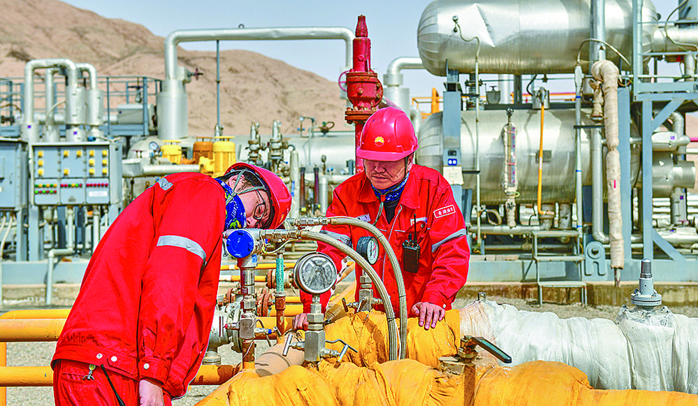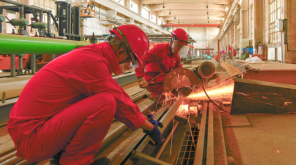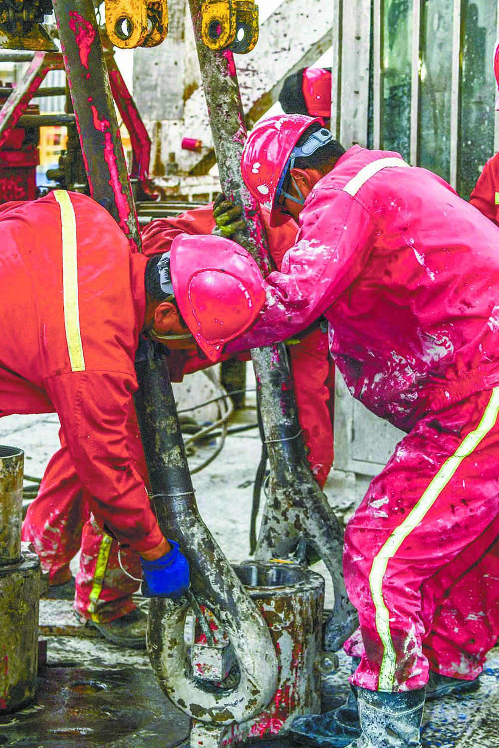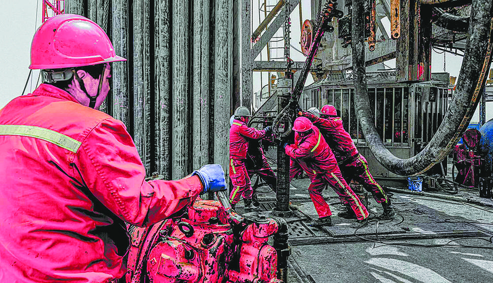鉆井平臺(tái)上機(jī)器轟鳴,泥漿濺濕衣帽,崗位員工依然規(guī)范操作流程,有序下套管。在壓裂施工現(xiàn)場(chǎng),大風(fēng)卷起戈壁黃沙,塵土飛揚(yáng)中幾個(gè)施工單位通力合作,分工有序,在確保安全的前提下加快安裝進(jìn)度。在石油機(jī)械制造車間,崗位員工精細(xì)測(cè)量尺寸、下料、焊接、組裝。焊花四濺,高溫使員工的工衣早已濕透,但為了保證焊接質(zhì)量,他們的眼睛緊盯在每一條焊縫上。