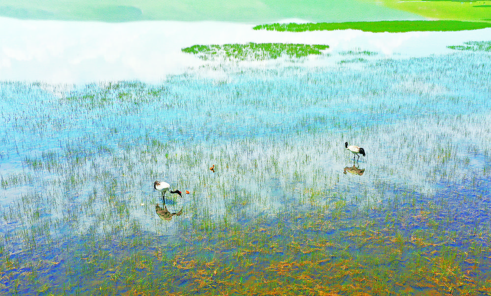 “只有人鳥共生,才能長遠發(fā)展”,已成為眾多黑頸鶴保護地的共同理念。在甘肅尕海,周邊禁止采砂、退出采礦、禁牧休牧,湖泊告別三度干涸歷史,水域面積不斷擴大,黑頸鶴回歸翱翔;在云南大包山,當地實施棲息地生態(tài)修復項目,恢復濕地超過9000畝,為黑頸鶴預留更多棲息生態(tài)空間。