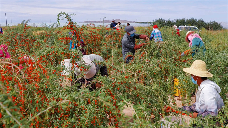 金秋九月,碩果壓枝。近日,青海省海西州都蘭縣的20余萬(wàn)畝枸杞喜迎豐收,都蘭縣各鄉(xiāng)鎮(zhèn)迅速成立采收工作專(zhuān)班,有序開(kāi)展枸杞的采、曬、銷(xiāo)工作。出產(chǎn)于柴達(dá)木盆地的都蘭枸杞,果實(shí)肉厚飽滿,品質(zhì)優(yōu)良,藥用價(jià)值極高,有著“柴杞”“軟黃金”等美譽(yù)。(張皓芃) ?