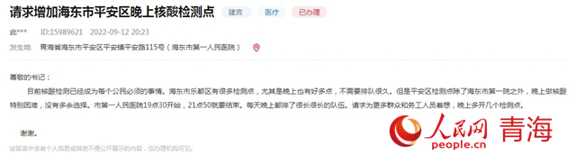 人民建議|增加夜間核酸采樣點 青海海東:已增加