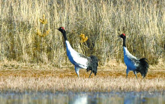 悠閑的丹頂鶴一家。通訊員 星智攝