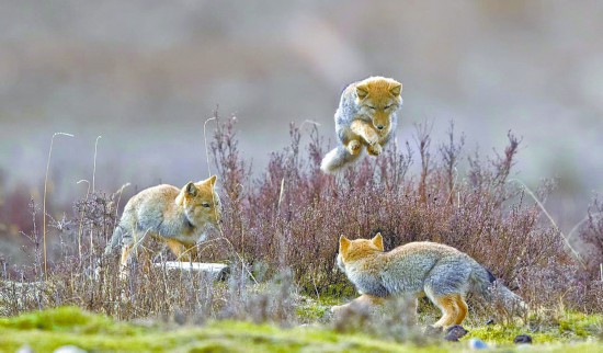 草原上藏狐在嬉戲打鬧。通訊員 星智攝