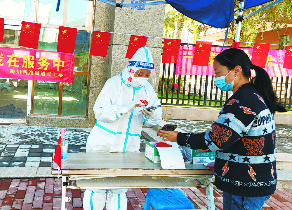 “大媽,您要的水果和蔬菜給您放在門口了,還有什么要幫忙的嗎?有沒有需要扔的垃圾?”南山西社區(qū)網(wǎng)格長(zhǎng)王欣蕊提著幾大袋物品,給轄區(qū)正在居家隔離的居民送去生活必需品。下樓后,王欣蕊一邊拿著手機(jī)查看下一家需要的物資,匆匆前往超市采買,一邊向記者介紹道:“我們組建了由街道干部、社區(qū)、城管、派出所、網(wǎng)格長(zhǎng)和居民志愿者組成的志愿服務(wù)隊(duì)伍,保證國(guó)慶假期居家隔離群眾的生活需求,也在小區(qū)巡邏執(zhí)勤,引導(dǎo)居民群眾做好個(gè)人防護(hù),保證小區(qū)安全,維持正常生活秩序?!?/p>