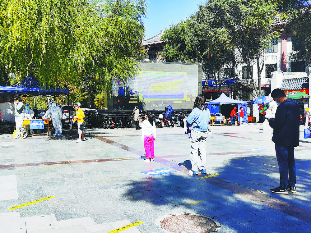 市民有序進(jìn)行核酸采樣。青海日?qǐng)?bào)記者 李雪萌 攝