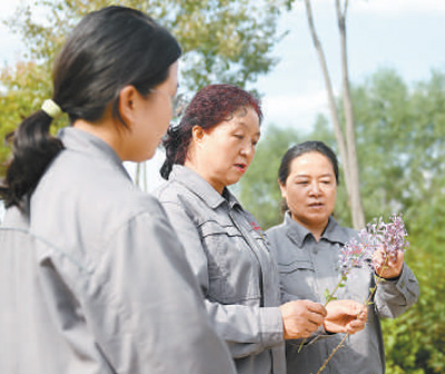 張錦梅(中)與同事在比較兩株丁香花的異同。新華社記者 張 龍攝