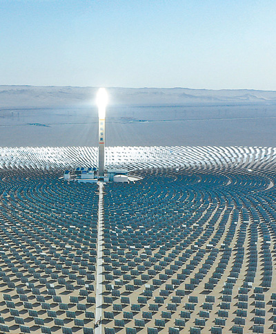 位于甘肅省敦煌市光電產業(yè)園區(qū)的首航高科敦煌100兆瓦熔鹽塔式光熱電站。
