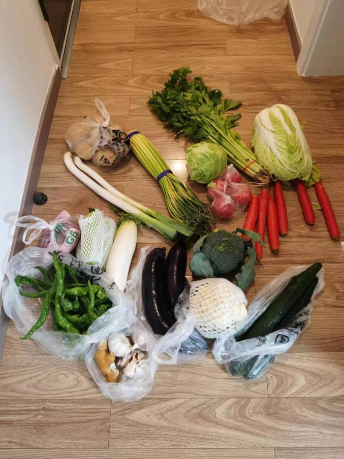 “被劃為管控區(qū)后,內(nèi)心其實(shí)是有‘物資焦慮’的,但是管控當(dāng)天社區(qū)就專門給我們這棟樓建立了微信群,志愿者會(huì)在群內(nèi)統(tǒng)計(jì)每家每戶的需求,原以為這些都需要住戶自行購(gòu)買,沒(méi)想到免費(fèi)配送,蔬菜新鮮,種類多樣,目測(cè)夠吃一個(gè)星期了。”徐先生還表示,社區(qū)工作人員及志愿者們,提著30多斤的物資挨家挨戶配送,確實(shí)很辛苦。