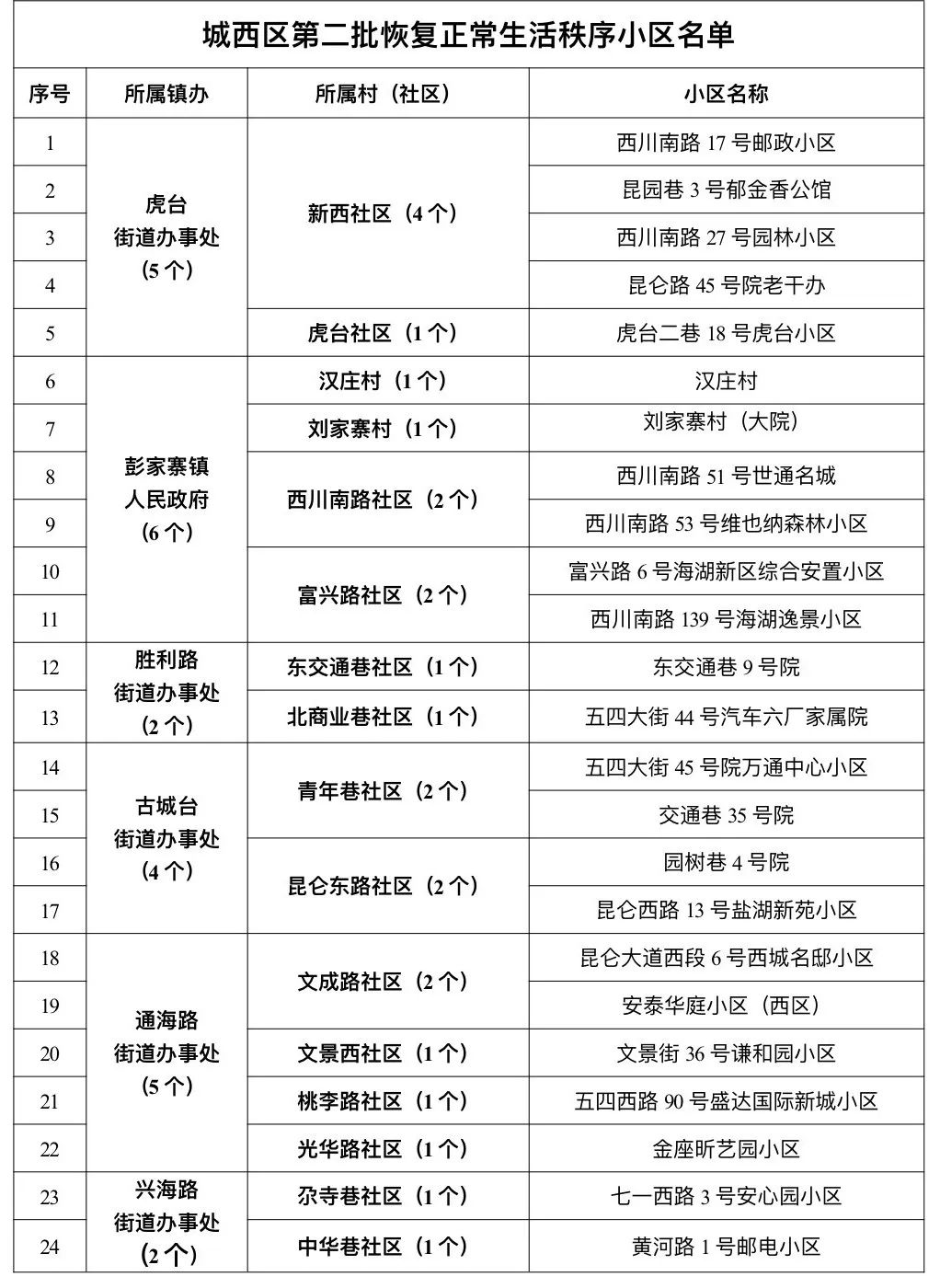 西寧市城西區(qū)第二批24個小區(qū)解除居家工作生活管理措施