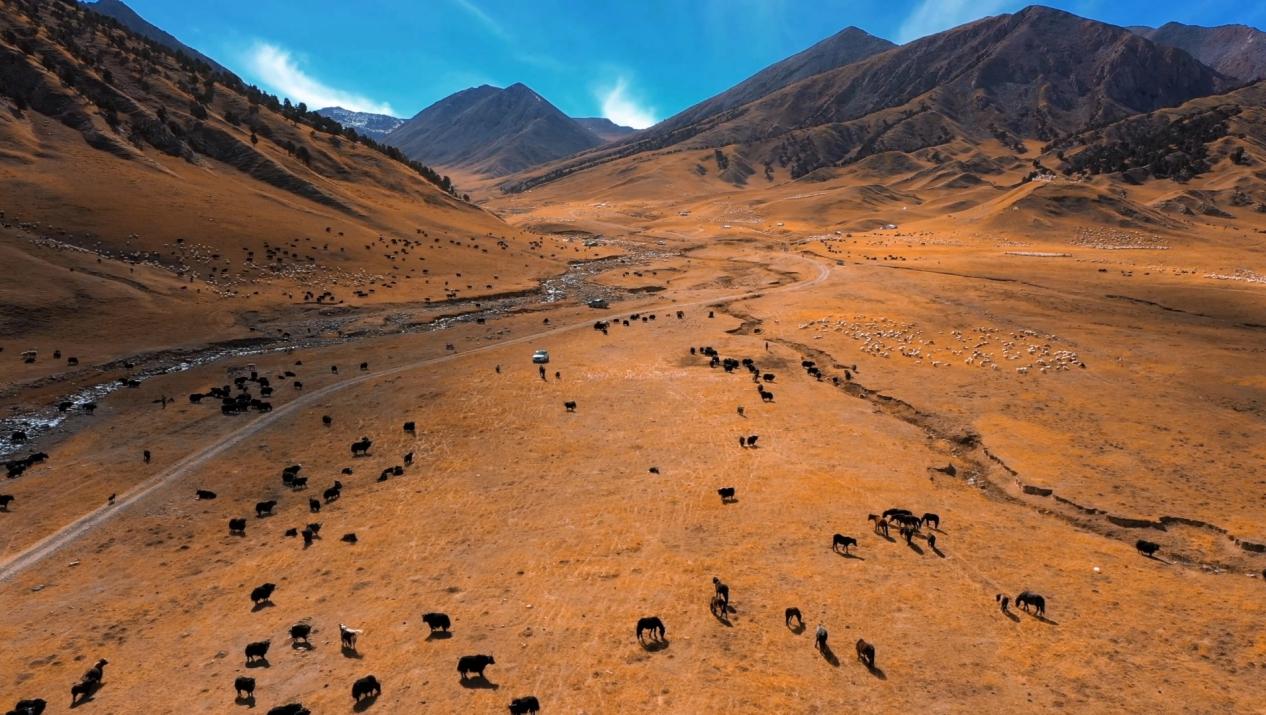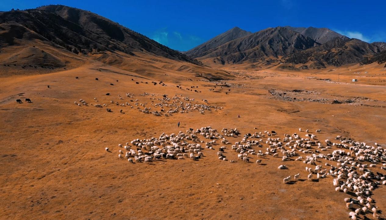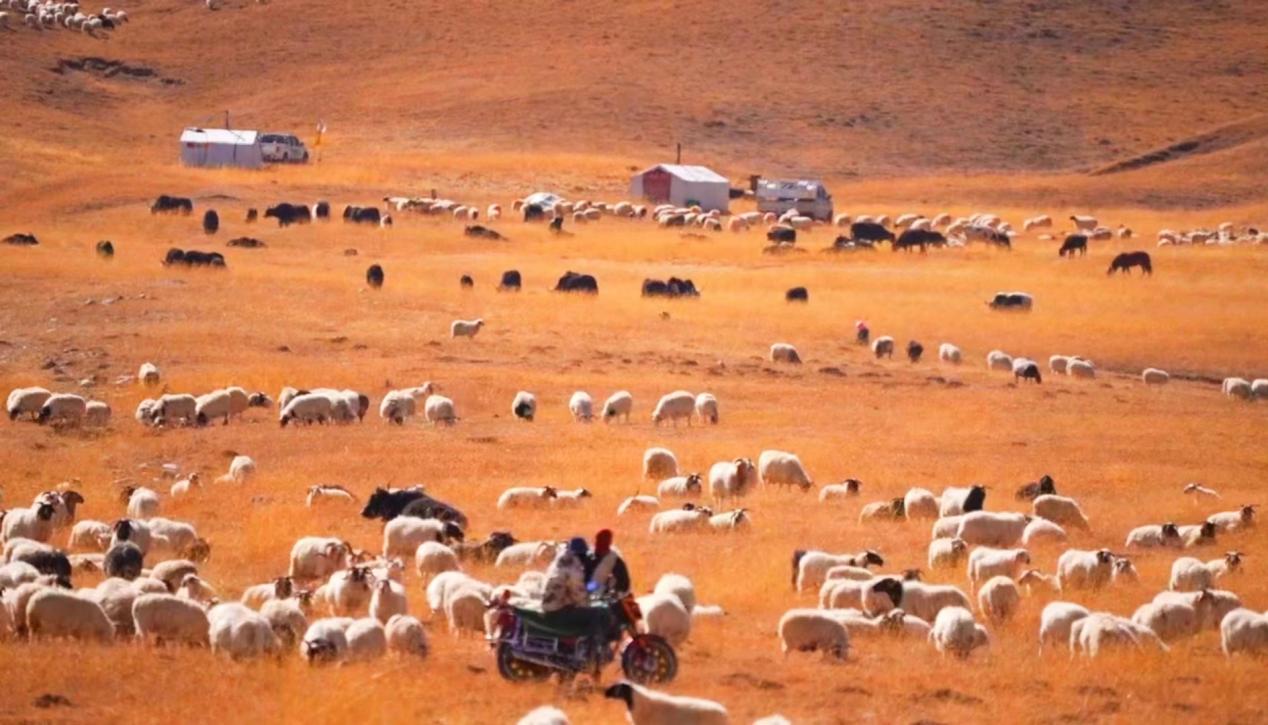 柴達(dá)木盆地都蘭數(shù)萬牛羊轉(zhuǎn)場上演“大遷徙”