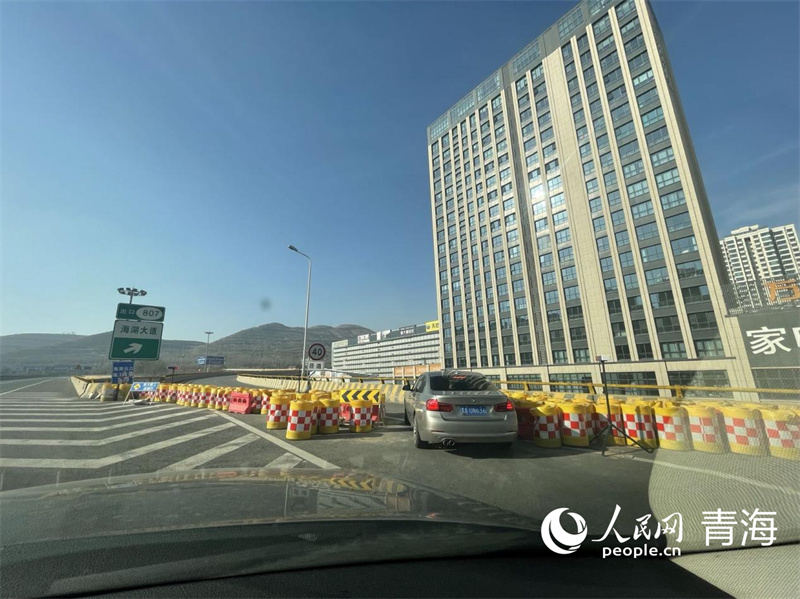 12月5日14時34分,西寧市城北區(qū)海湖大道出口狹窄,大車不可通行。人民網(wǎng) 陳明菊攝