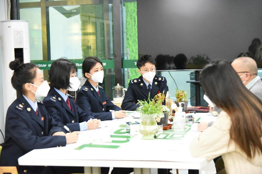 稅務(wù)干部深入企業(yè)宣傳2023年便民辦稅春風(fēng)行動(dòng)舉措。杜亞萍攝