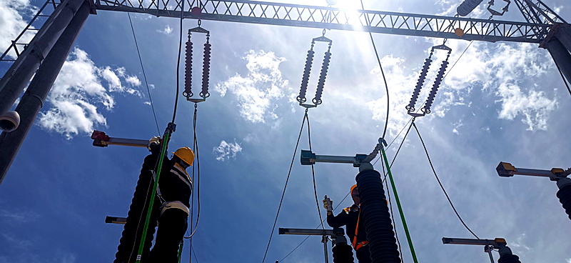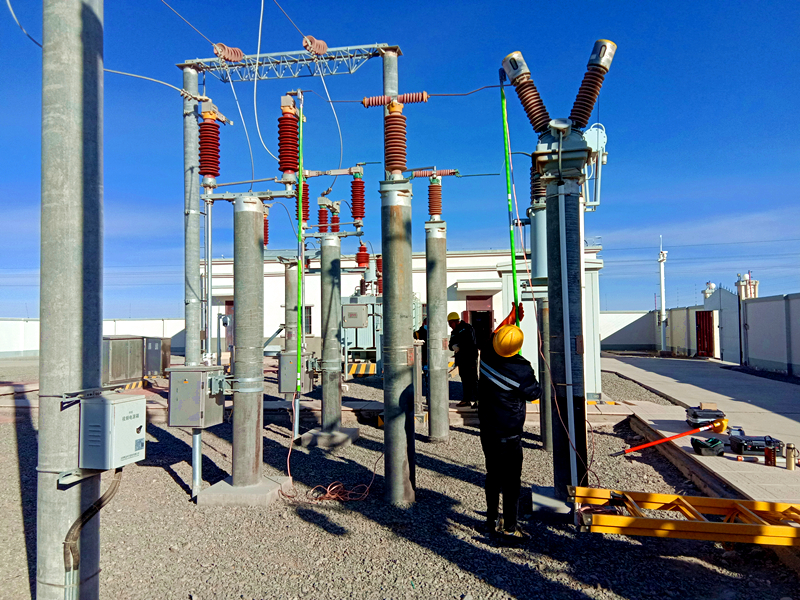 職工正在進(jìn)行驗(yàn)電接地。周賀攝