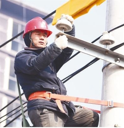國(guó)網(wǎng)河南省電力公司柘城縣供電公司工作人員在進(jìn)行線路改造。本報(bào)記者 畢京津攝