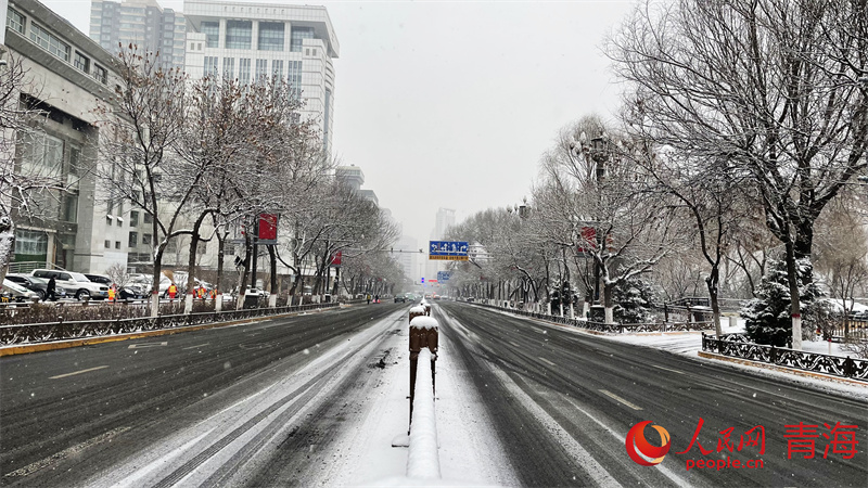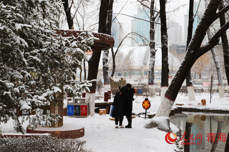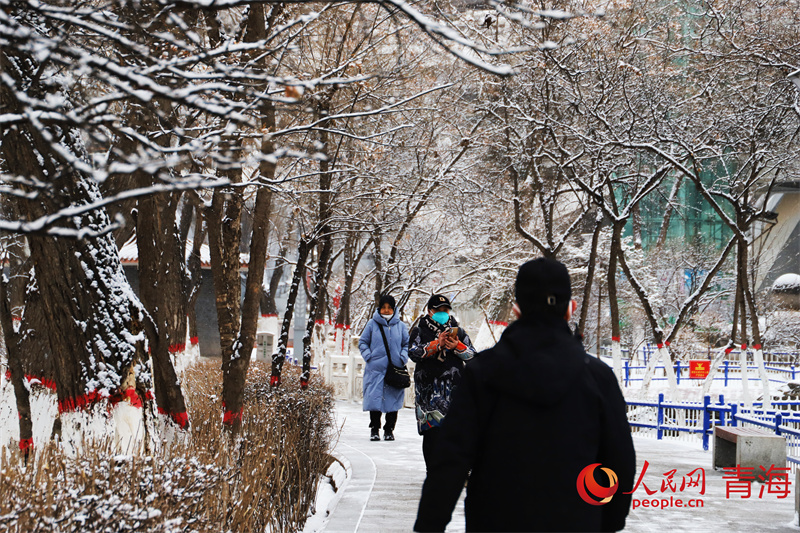 春雪飄落西寧。人民網(wǎng) 陳明菊攝