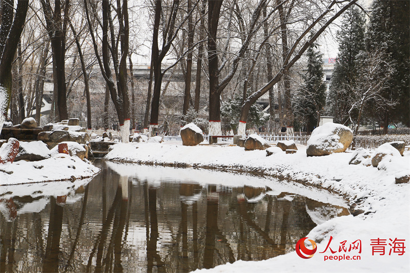 麒麟灣公園河畔的雪。人民網(wǎng) 陳明菊攝