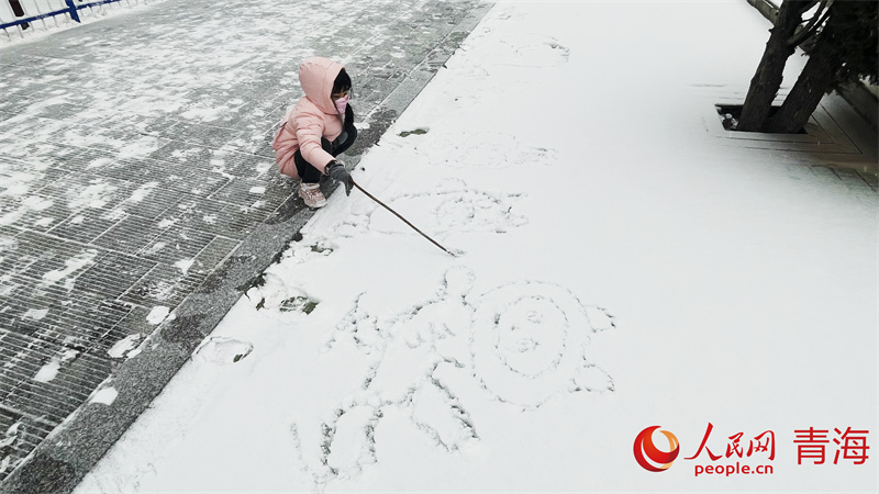 小孩子在雪中作畫。人民網(wǎng) 陳明菊攝