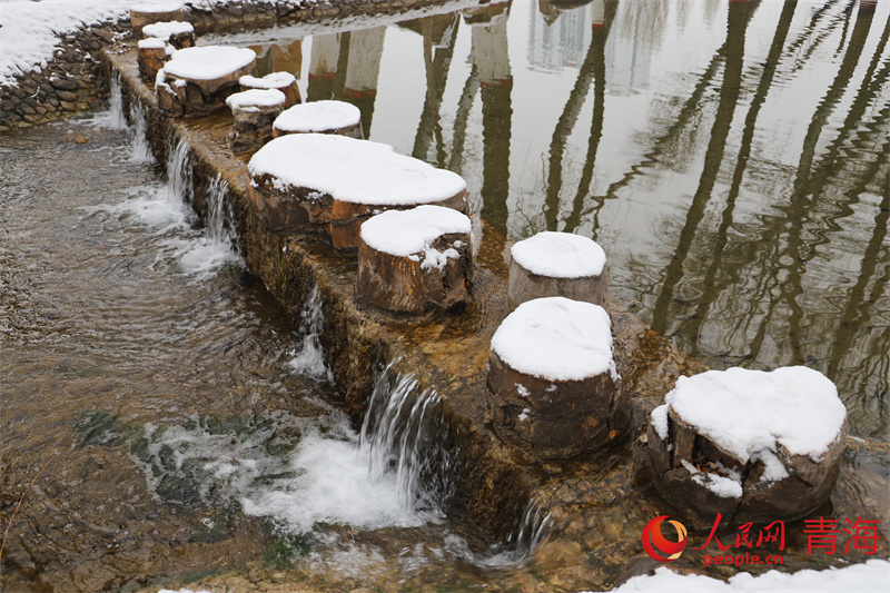 河水與春雪相映成趣。人民網(wǎng) 陳明菊攝