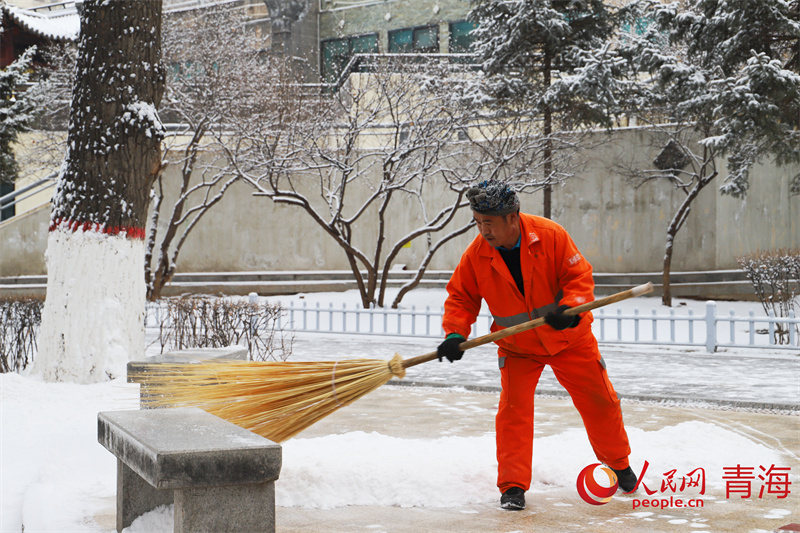積雪清掃忙。人民網(wǎng) 陳明菊攝