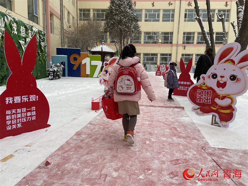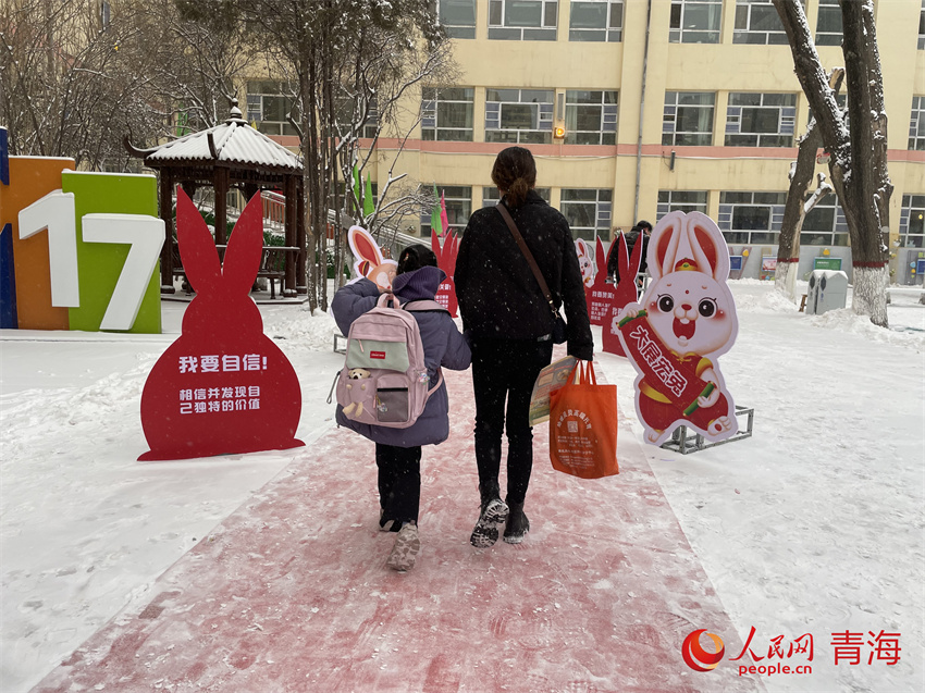 新學年,新氣象。2月13日,青海省西寧市中小學生踏著風雪,以嶄新的姿態(tài)、飽滿的熱情迎來兔年新學期。