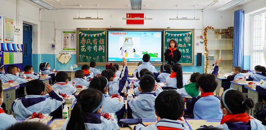 “新的學期,孩子們又如期來到了學校。老師們都深切感受到孩子們對校園和課堂的渴望。瑞雪兆豐年,希望孩子們都能健康平安、學有所獲、學有所樂?!辟Z小莊小學教師陳萍說。