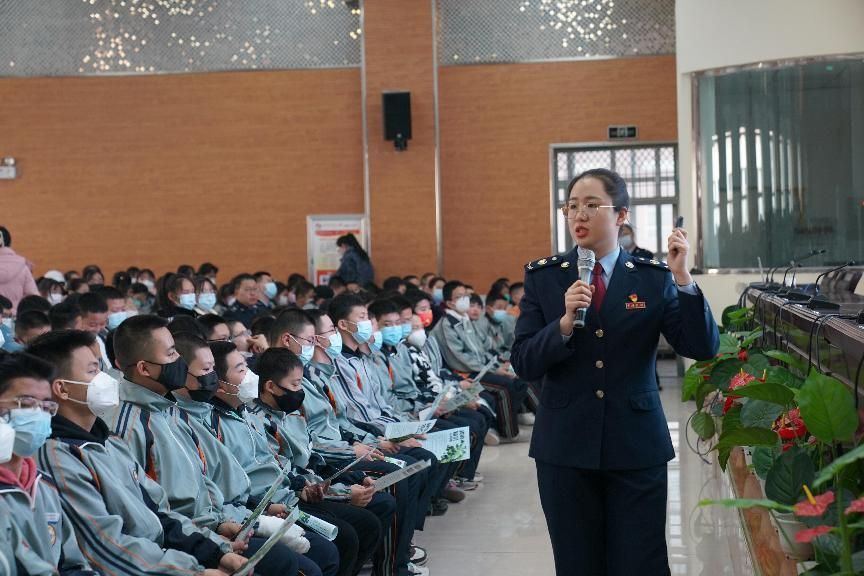 稅務(wù)干部為青海師大附二中的同學(xué)們講授稅法知識(shí)。陳貴龍攝