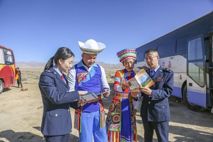 烏蘭縣稅務(wù)局干部借助駱駝文化節(jié)向群眾宣講中央文件精神和稅費支持政策。烏蘭縣稅務(wù)局供圖