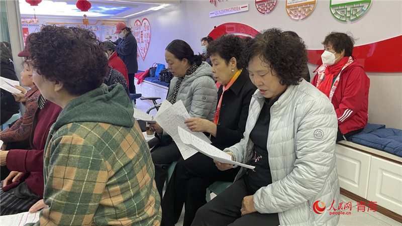 載歌載舞,水井巷社區(qū)新時(shí)代文明實(shí)踐站內(nèi)歌聲嘹亮,退休老人們正在合唱演奏;