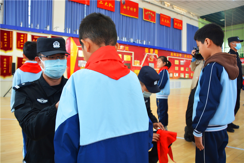 特警隊員為學(xué)生戴紅領(lǐng)巾。馬黑買攝
