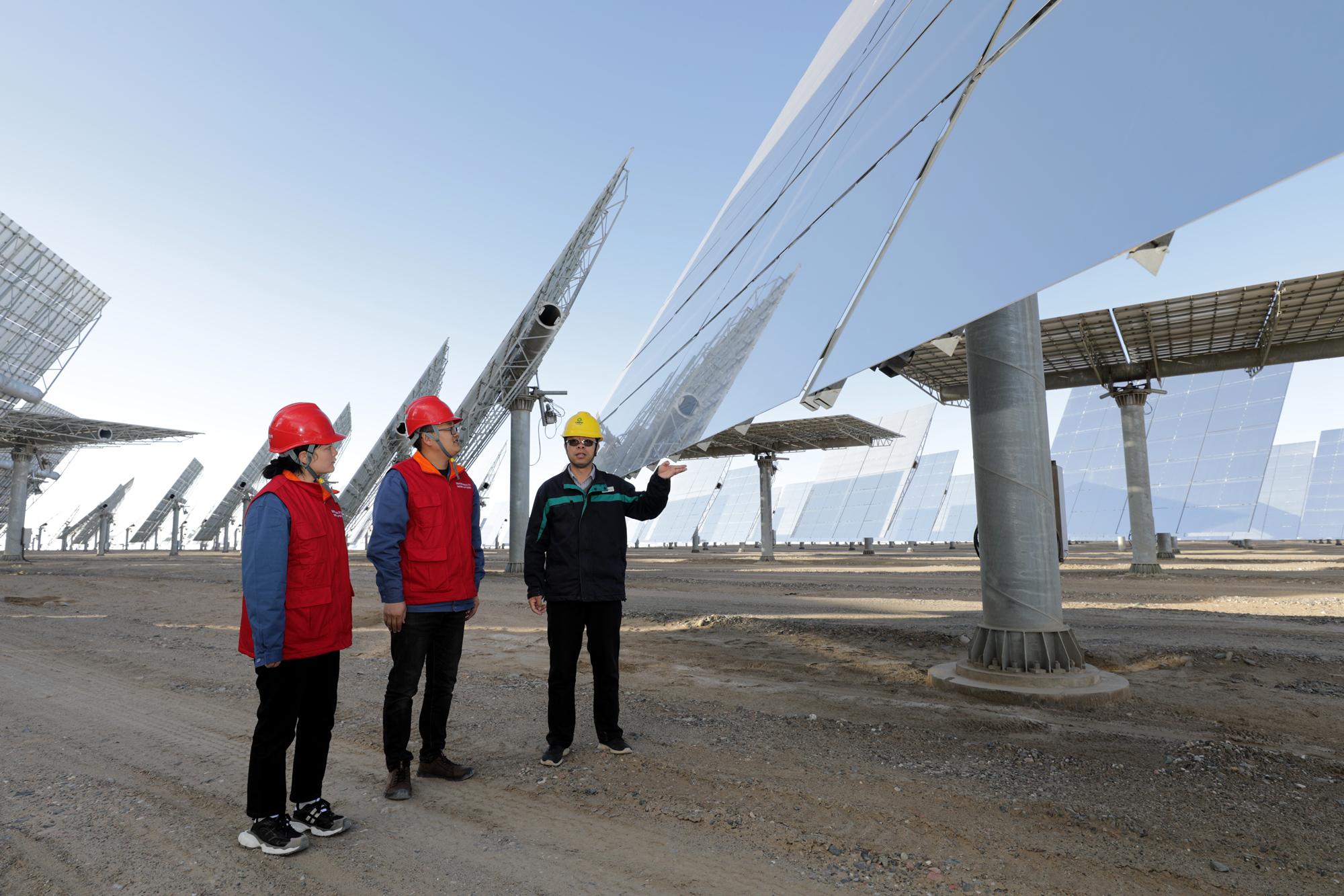 國網(wǎng)青海電力三江源共產(chǎn)黨員服務(wù)隊上門為中國綠發(fā)海西州多能互補示范工程塔式光熱電站“送診”。國網(wǎng)青海省電力公司供圖