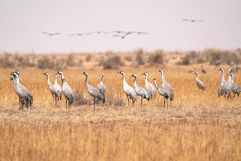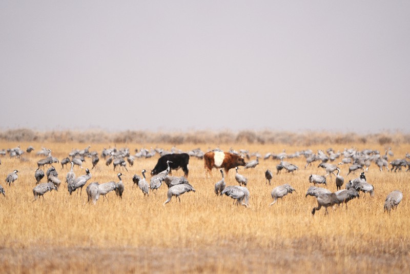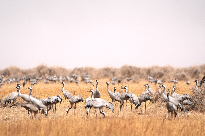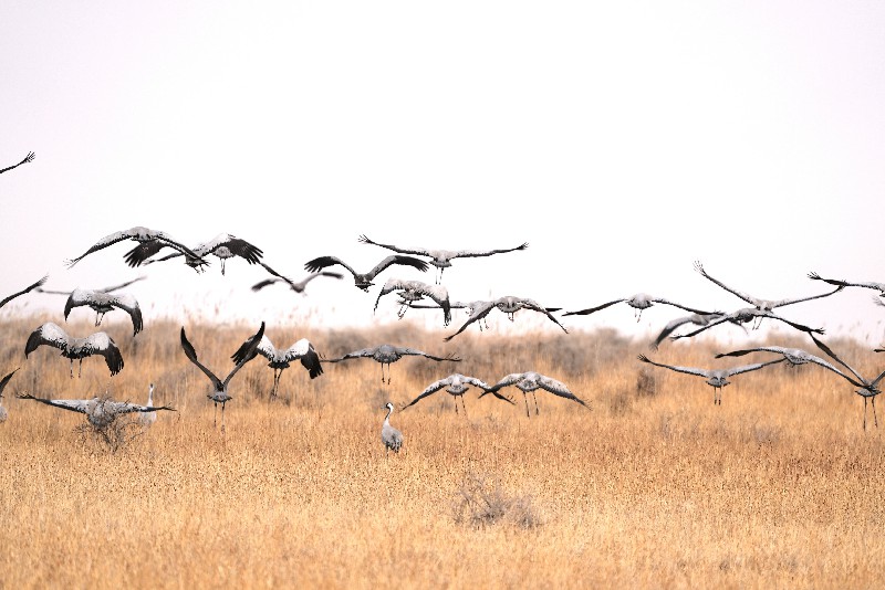 灰鶴遷徙停歇都蘭。希日尖措攝