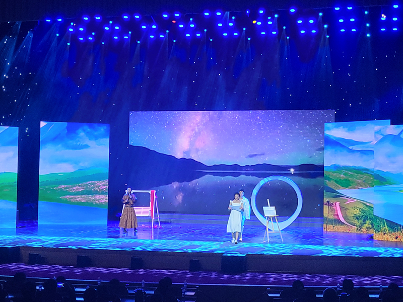 “一江清水向東流”以鑄牢中華民族共同體意識(shí)為主線,分飲水思源、綠水青山和春水繁星三大篇章,通過(guò)民族歌舞、情景表演、配樂(lè)詩(shī)朗誦歌頌新時(shí)代等多元化的藝術(shù)表現(xiàn)形式,回溯青海各族人民在中國(guó)共產(chǎn)黨的光輝照耀下,團(tuán)結(jié)一致、不畏艱險(xiǎn)保護(hù)中華水塔、維護(hù)民族團(tuán)結(jié)、感恩對(duì)口支援、積極開(kāi)拓創(chuàng)新的奮斗歷程和偉大成就。