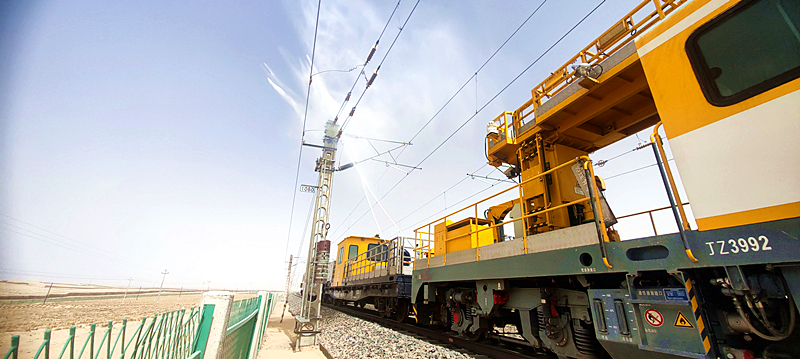 青藏鐵路從青海省海西蒙古族藏族自治州察爾汗鹽湖橫穿而過,成為世界上唯一一條建在鹽湖上的鐵路,這一段約33公里的線路也被稱為“萬丈鹽橋”。每年的4月、9月,青藏鐵路格爾木大修網(wǎng)工區(qū)都會(huì)組織人員清洗絕緣子設(shè)備。據(jù)悉,自該段于2011年6月30日開通運(yùn)行至今,從未發(fā)生過一起因?yàn)辂}污造成的接觸網(wǎng)跳閘中斷行車的事故。