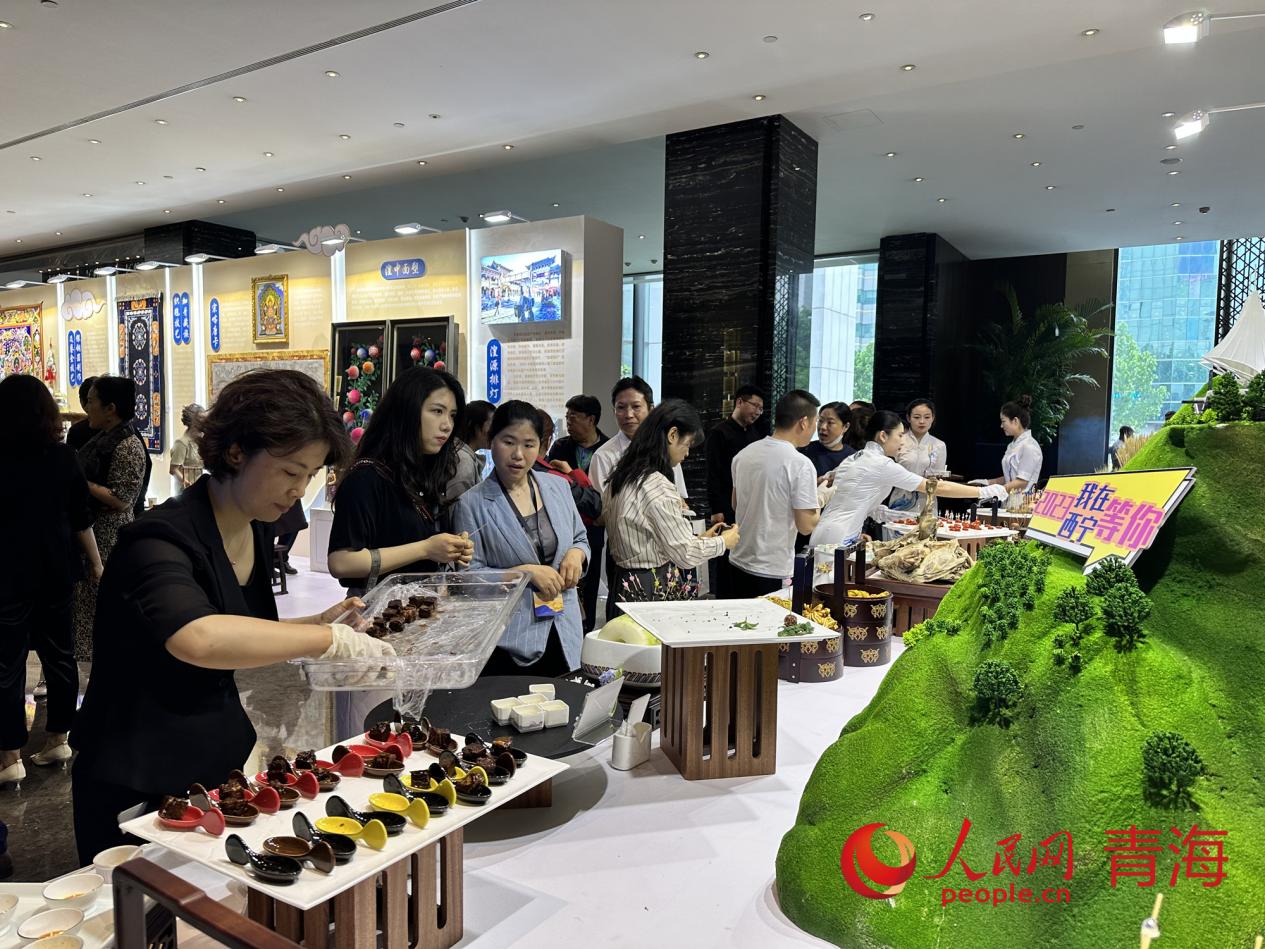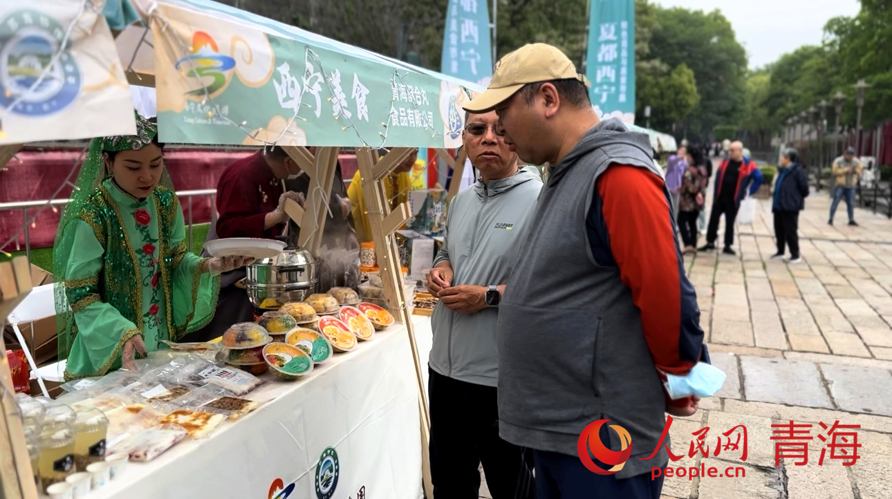 5月5日,“大美青?!つ暇┪鲗幬幕糜沃堋遍_(kāi)幕儀式會(huì)場(chǎng)外,西寧特色美食及非遺產(chǎn)品展。人民網(wǎng) 劉沛然攝