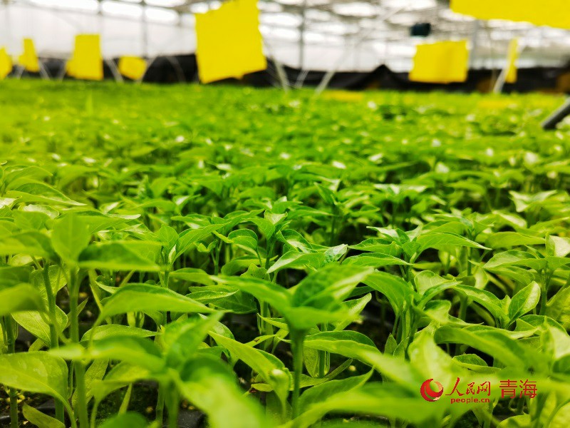 下臺(tái)二村蔬菜育苗棚內(nèi)的菜苗。人民網(wǎng) 馬盛楠攝