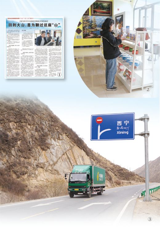圖③:從門源縣發(fā)出的快遞運輸車輛正行駛在道路上。