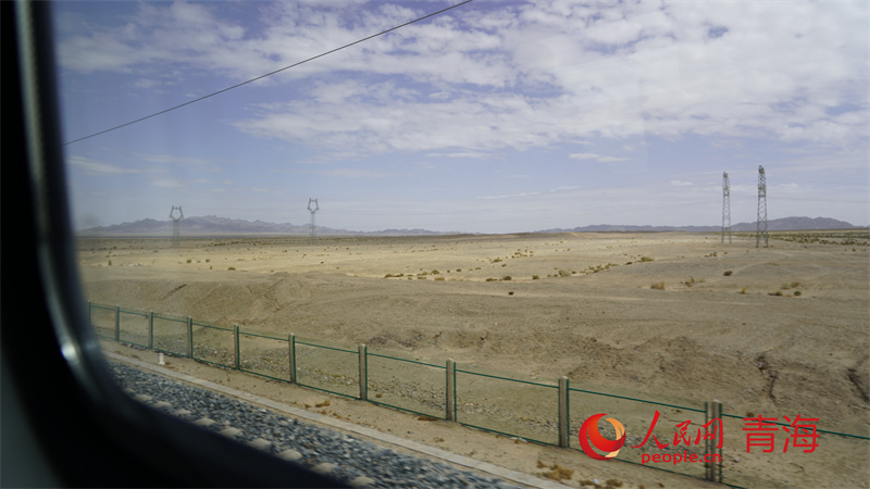 列車疾馳在柴達木盆地。人民網(wǎng)記者 甘海瓊攝